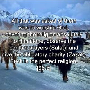 (Since the Contact Prayers are decreed five times in a Quranic day and night, they constitute the prime source of nourishment for our souls. Along with all other practices in Submission, the Contact Prayers were originally revealed through Abraham (21:73, 22:78). Although these five daily prayers were practiced before the revelation of the Quran, each Contact Prayer is specifically mentioned in the Quran (24:58, 11:114, 17:78, & 2:238). When God uses the plural tense, this indicates that other entities, usually the angels, are involved. When God spoke to Moses, the singular form was used (20:12-14).)